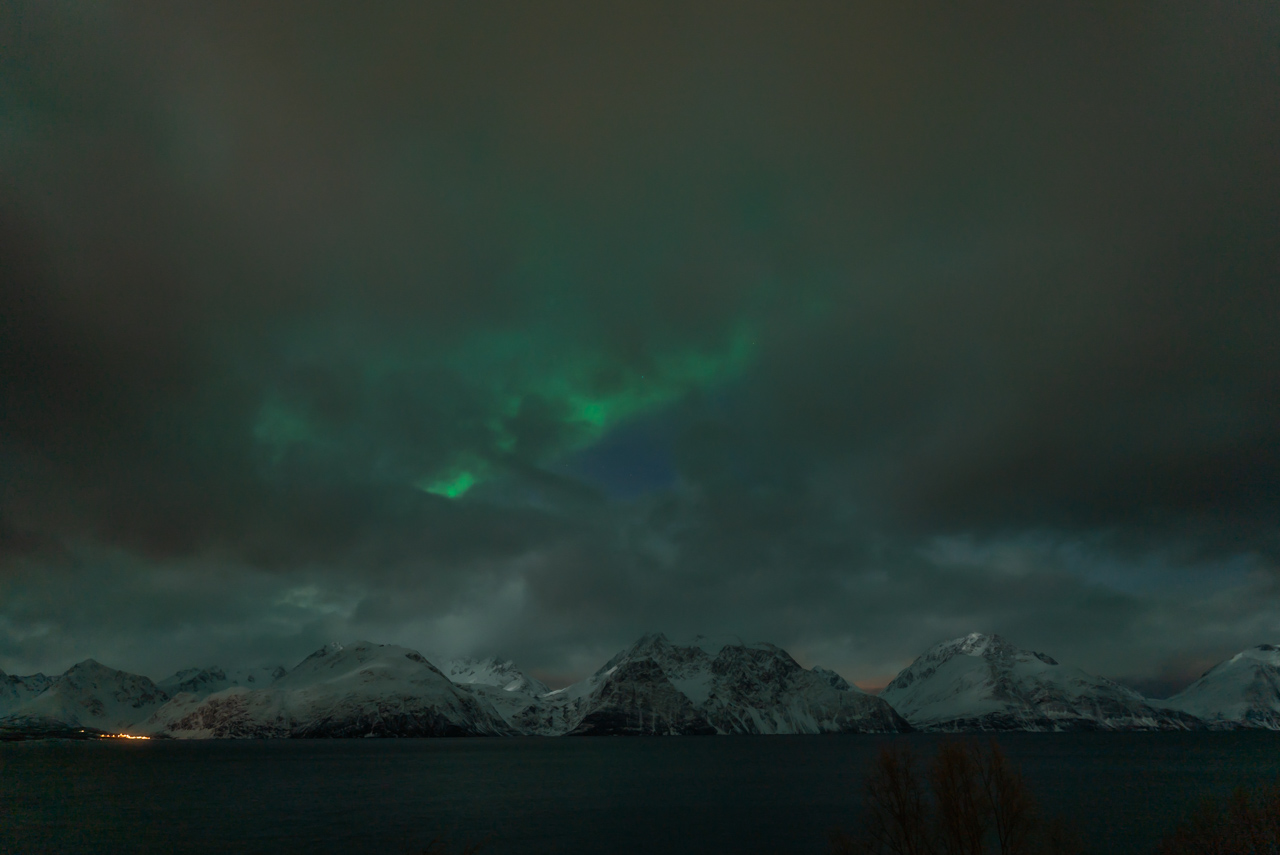 Der ganze Tag war eigentlich bewölkt, aber am Abend gegen 22 Uhr hats leicht aufgerissen und es gab ein kleines Nordlicht zu sehen. Mit dem Auge konnte man es eigentlich nicht sehen, aber die Kameras haben es erfasst. Und so haben wir noch bis gegen 23 Uhr fotografiert.