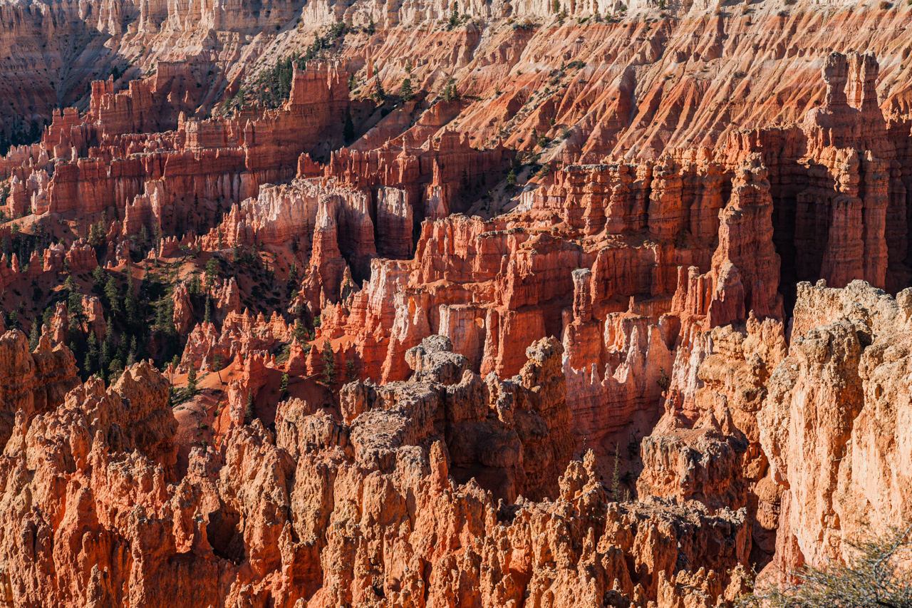 Am Morgen zurück hinter Escalante und dann 12 Milen die Hole-in-the-Rock-Road bis nach Devils Garden. Von dort aus wieder zurück nach Escalante und von dort aus weiter zum Bryce Canyon. Dort zuerst alle Aussichtspunkte abgefahren und dann zum Sonnenuntergang an den Sunset Point. Nach dem Duschen am Campingplatz haben wir noch versucht Essen zu gehen, aber die Schlange stand bis raus.