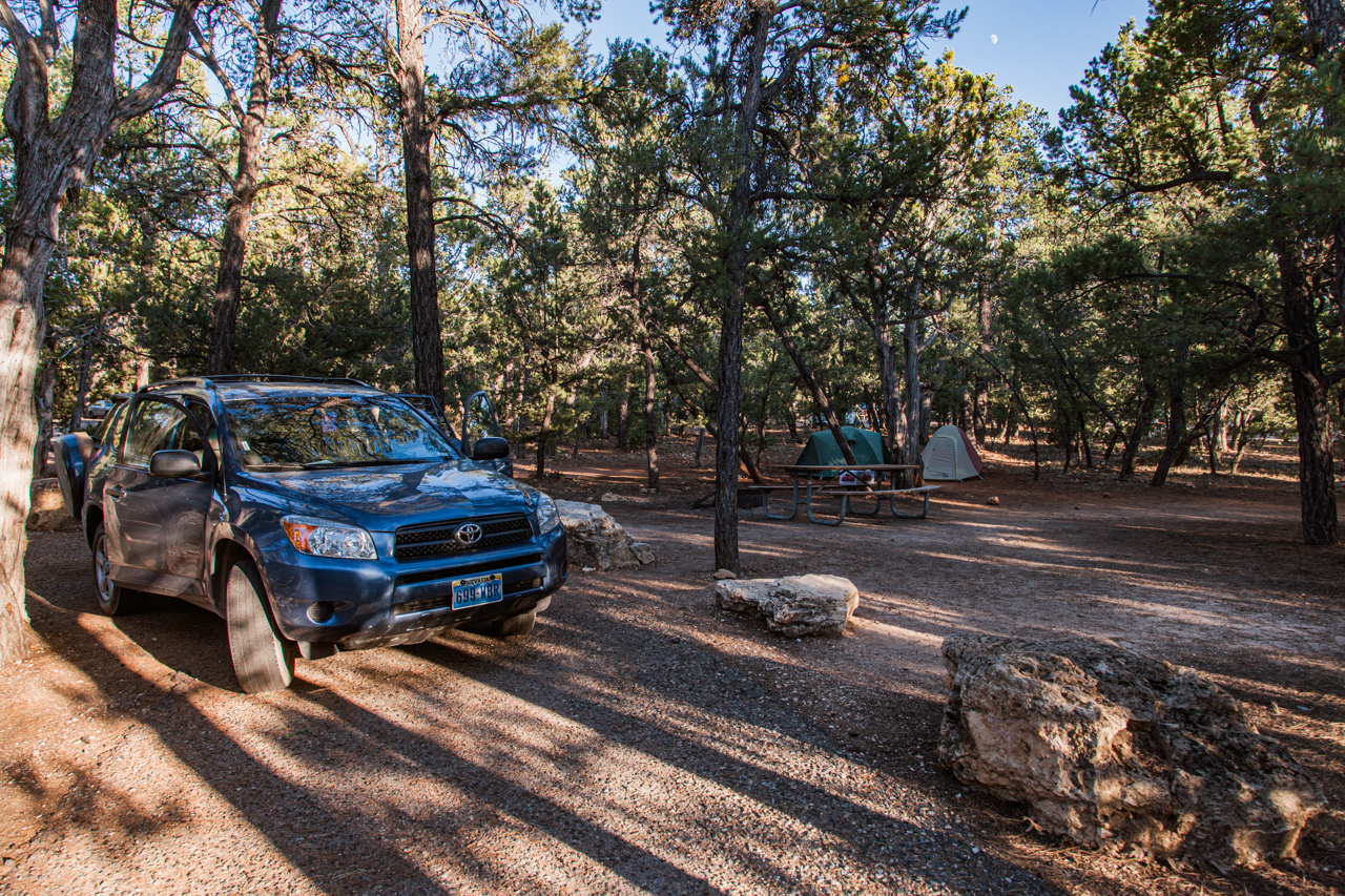 Gegen 12 waren wir dann wieder beim Auto und sind zum Duschen nochmal auf den Campground gefahren. Von dort aus ging es dann direkt zum Grand Canyon. Nach dem Zeltaufbau sind wir dann noch zum Rim die Abendsonne anschauen.