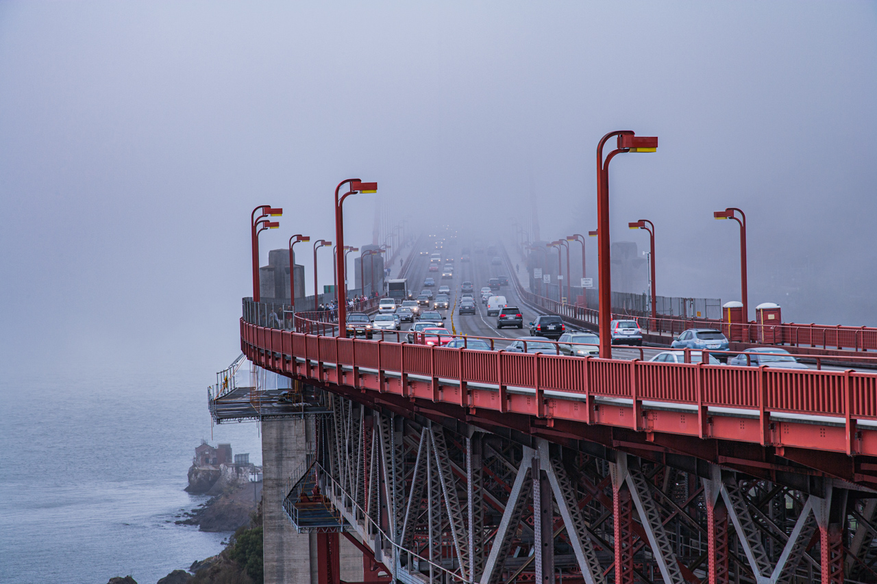 Morgens erst mal ausgeschlafen und dann über die Golden Gate Bridge nach Norden bis kurz hinter Bodega Bay gefahren. Auf dem Rückweg über den Mt. Tamalpais gefahren. Der Tag war ziemlich wolkenverhangen und wir hatten nur vom Mt. Tamalpais aus Sonne. Bei der Golden Gate Bridge war ca. 200m Sicht.